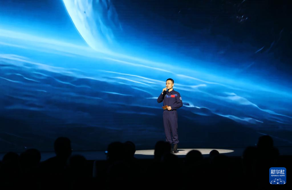 5月30日,在第四届文明交流互鉴对话会开幕式上,神舟十七号航天员唐胜杰进行《飞天筑梦:从莫高窟到空间站》主题展示。