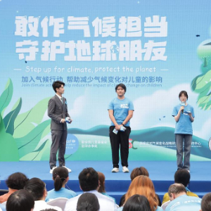 当日,联合国儿童基金会驻华办事处、国家应对气候变化战略研究和国际合作中心、生态环境部宣传教育中心以及中国气象学会在北京共同启动“敢作气候担当”青少年应对气候变化倡导活动。此次活动为期六个月,旨在赋能青少年在家庭、学校和社区中采取积极行动,应对气候变化。