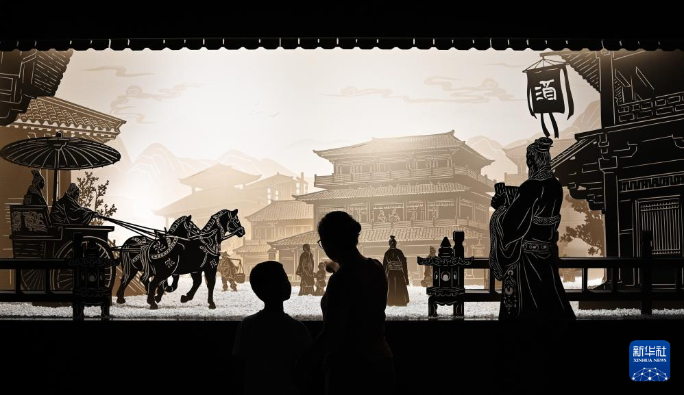 5月31日,游客在京杭大运河畔的山东省枣庄市台儿庄古城观看“鲁南皮影戏”。