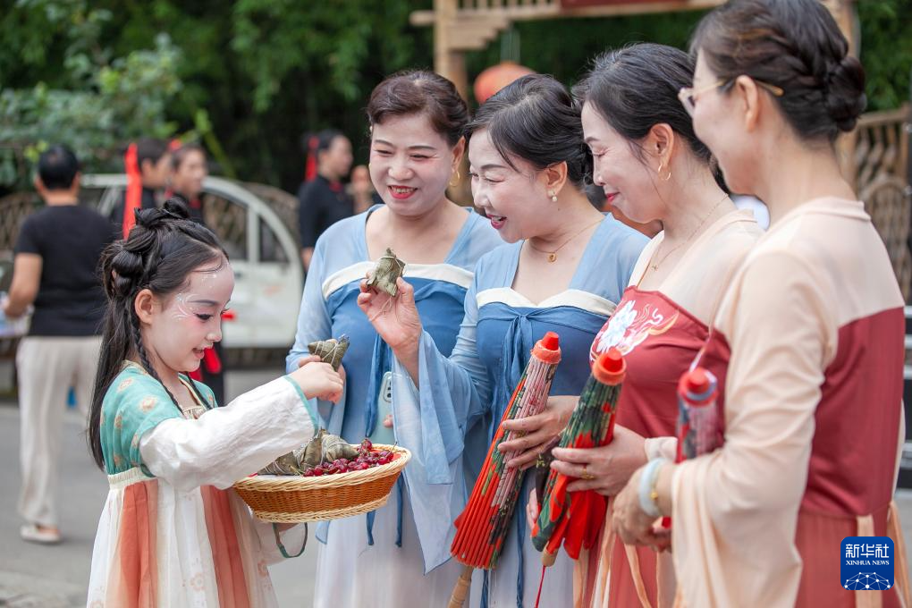 5月31日,在河南省焦作市博爱县磨头镇西张赶村,小朋友为游客发粽子。