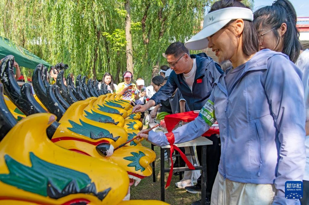 5月31日,浙江省金华市婺江边举行龙舟点睛仪式。