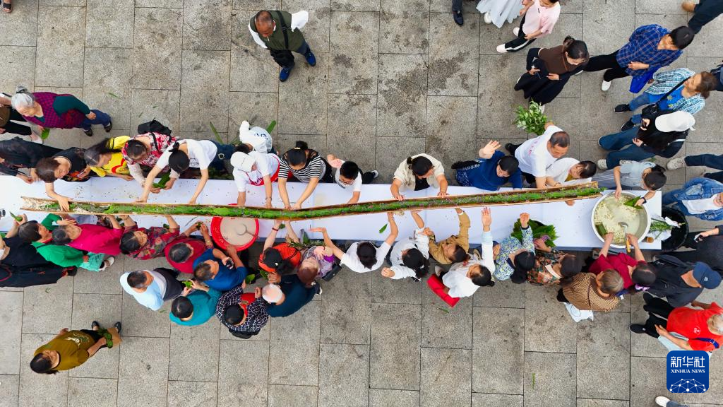 5月31日,四川省泸州市市民共同制作长达10米的特色龙舟粽。