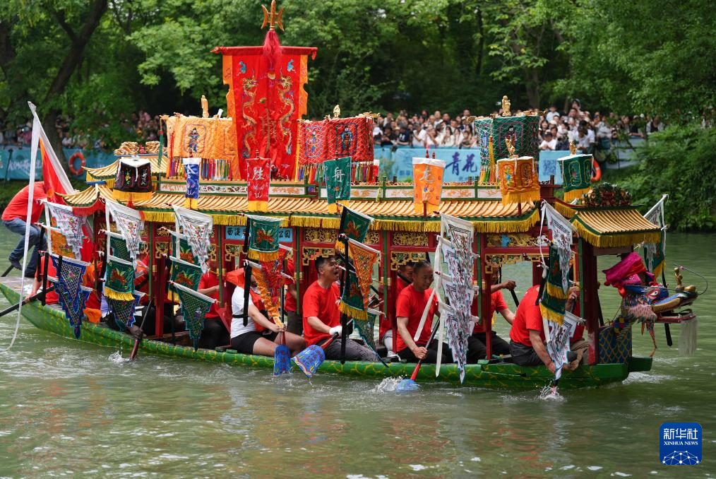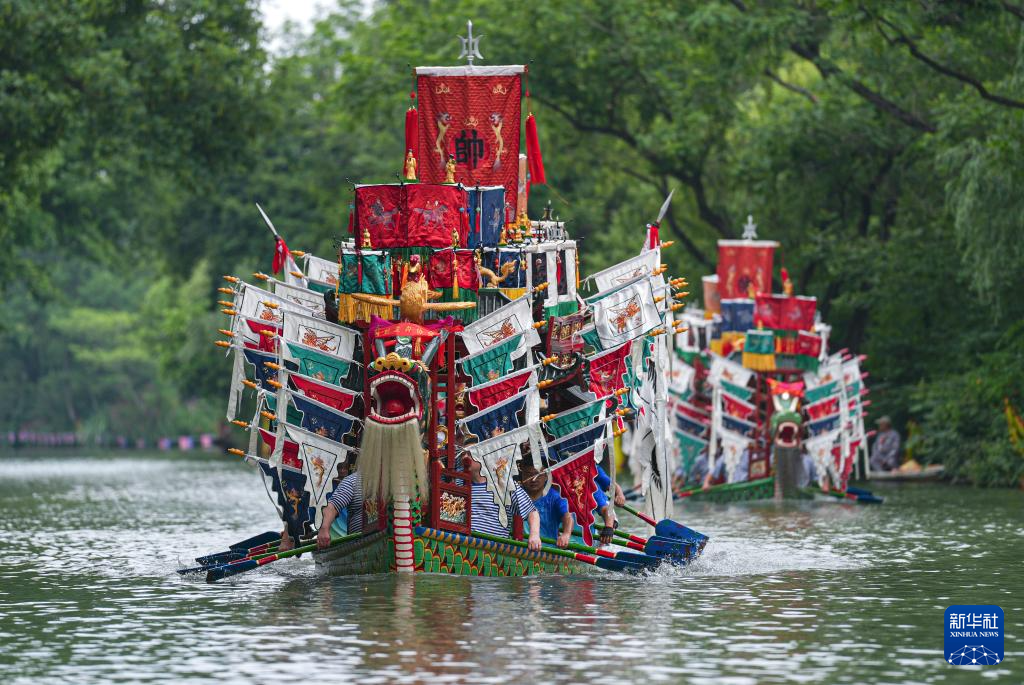 5月31日,村民在杭州西溪国家湿地公园的蒋村龙舟胜会上划龙舟。蒋村龙舟胜会于2011年被列入国家级非物质文化遗产名录。