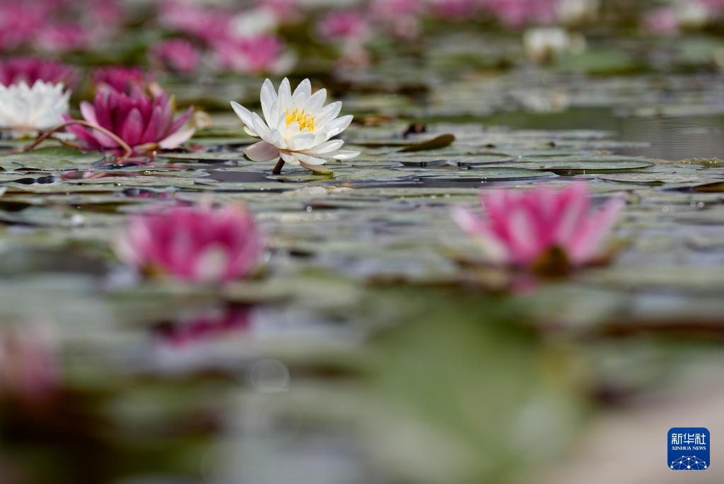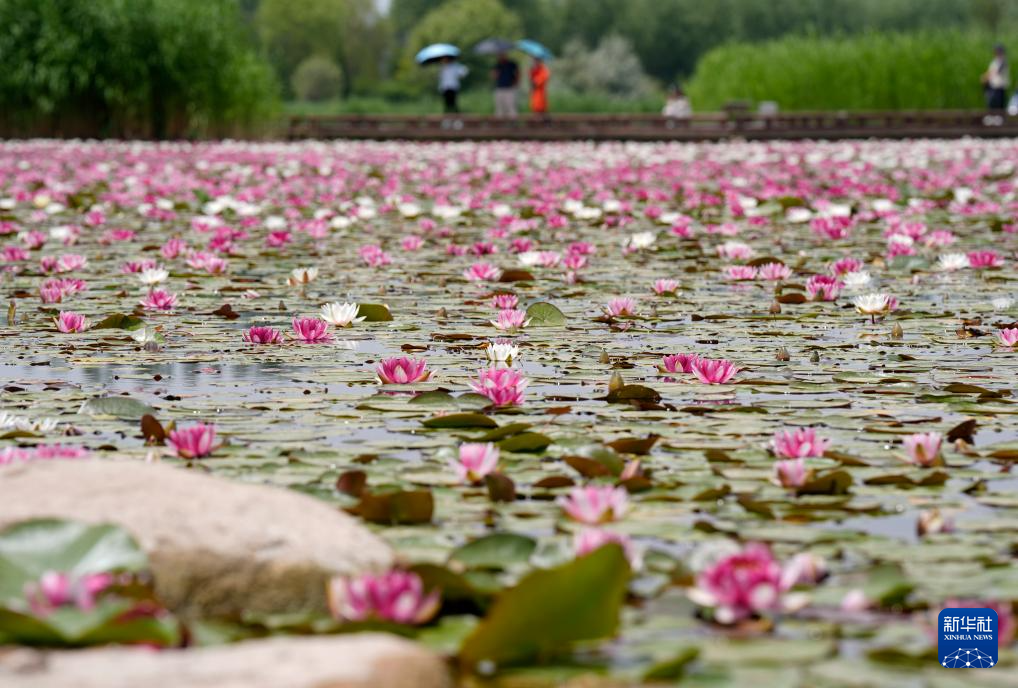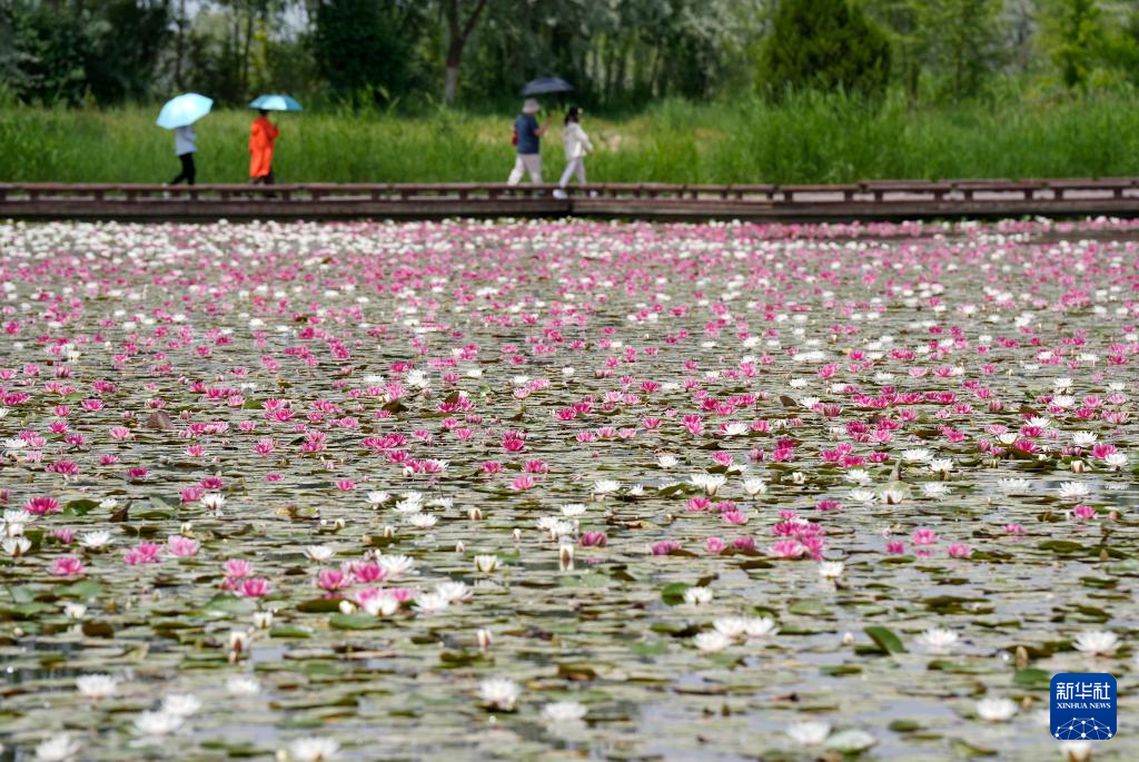 端午小长假期间,在位于宁夏银川市的中国花卉博览园湖面,睡莲竞相开放,吸引游客前来观赏、拍照。