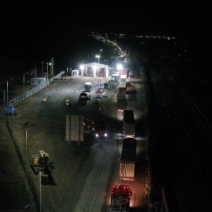 6月2日凌晨,车辆在伊尔克什坦口岸国门前接受检查。