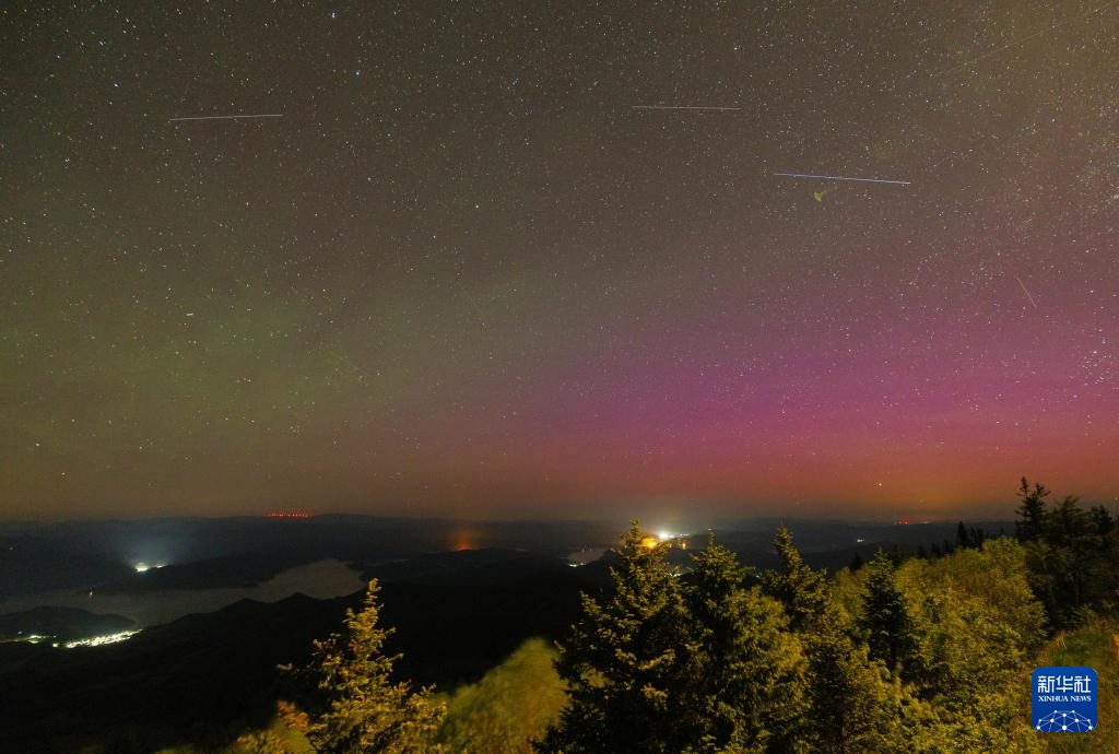 6月2日在黑龙江省牡丹江市海林市大锅盔山拍摄的极光。