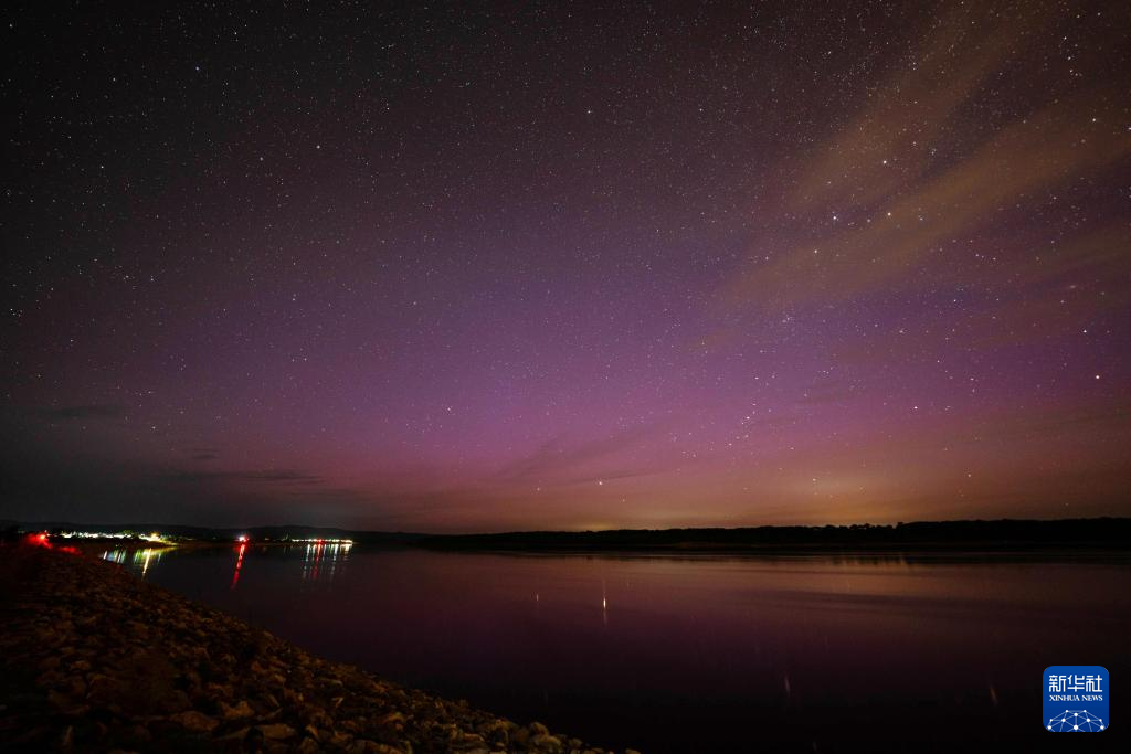 6月2日在松花江哈尔滨段拍摄到的极光和银河。