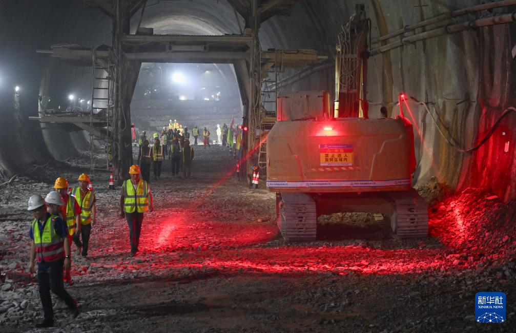 6月3日,工作人员在中梁山隧道内施工。