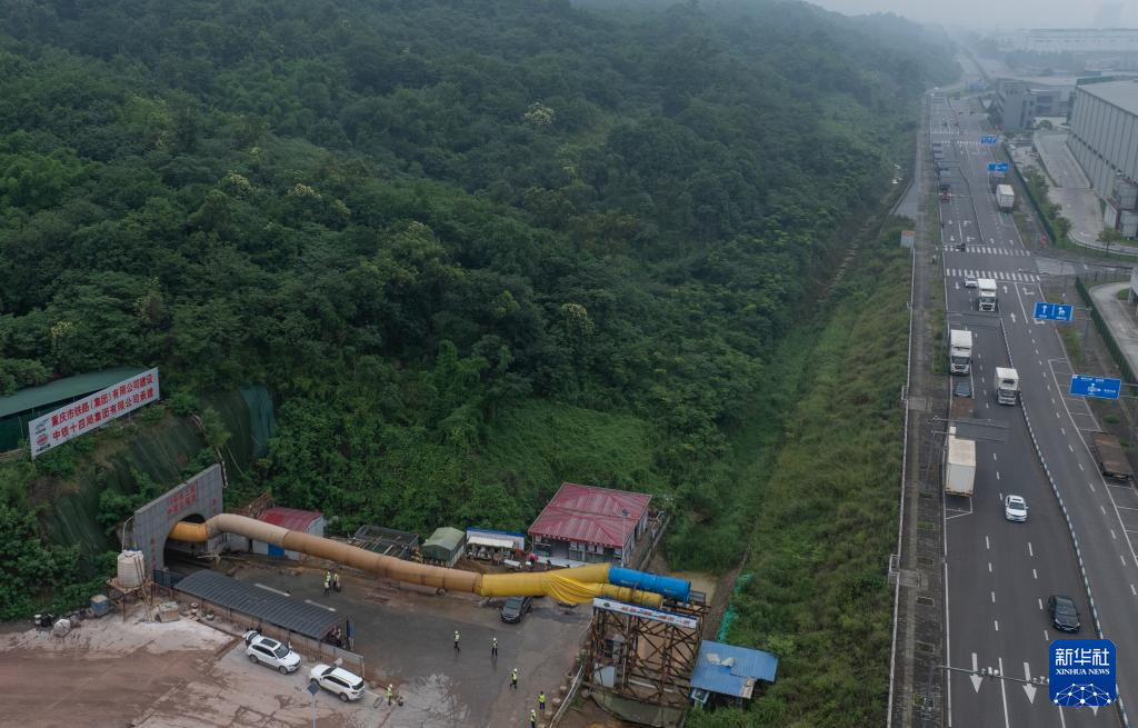 6月3日,重庆轨道交通15号线二期——中梁山隧道全隧贯通(无人机照片)。
