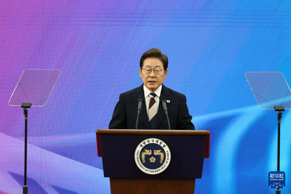 6月4日,在韩国首尔,李在明在韩国国会发表就职讲话。