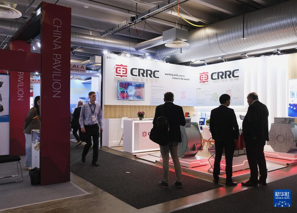 6月3日,在挪威利勒斯特伦举办的挪威国际海事展上,与会者参观中国馆。