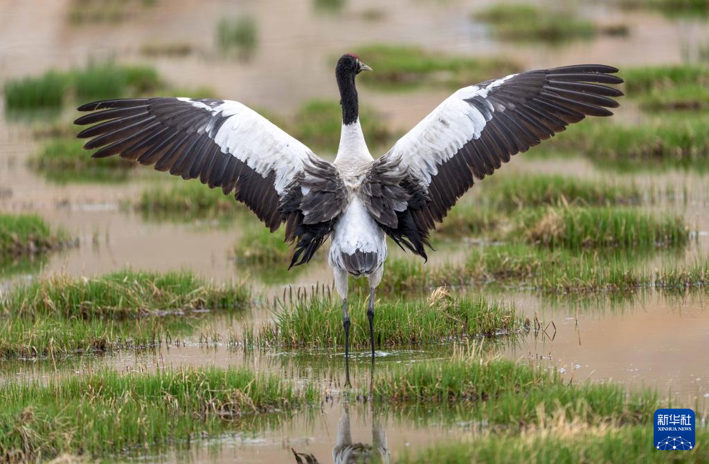 每年四月开始,就会有成对的黑颈鹤陆续迁徙至西藏那曲市申扎县,选择湿地环境繁衍下一代。