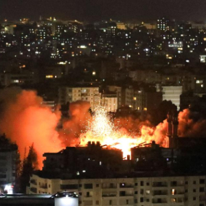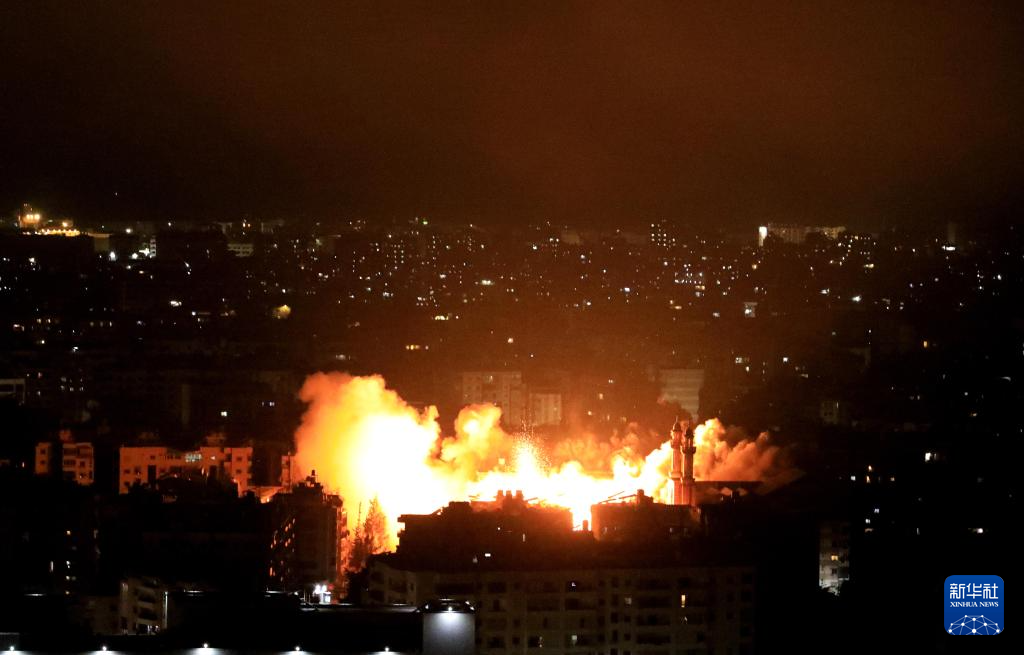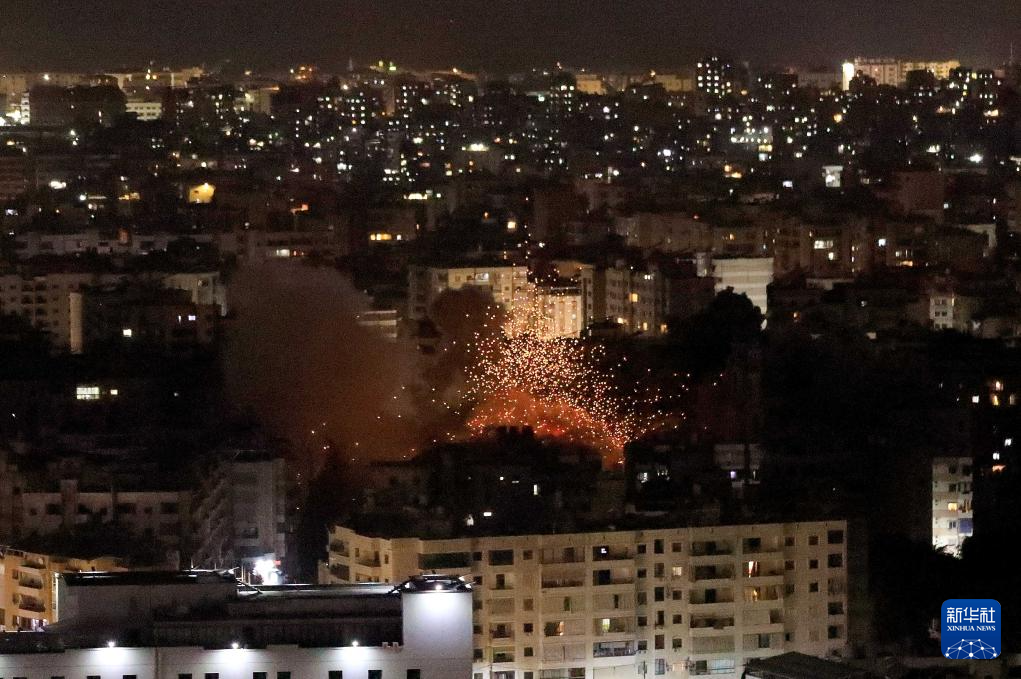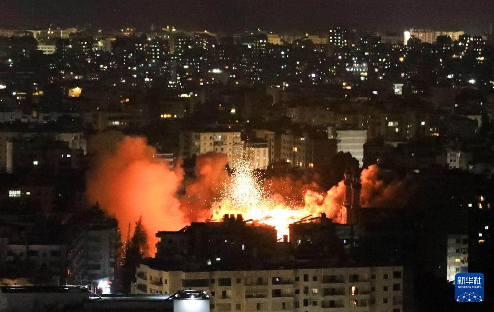 6月5日,黎巴嫩贝鲁特南部遭以军袭击的地点冒出火光。