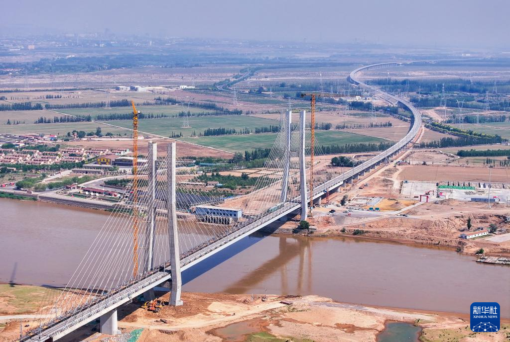 这是6月6日拍摄的已完成铺轨的包银高铁乌海黄河特大桥(无人机照片)。