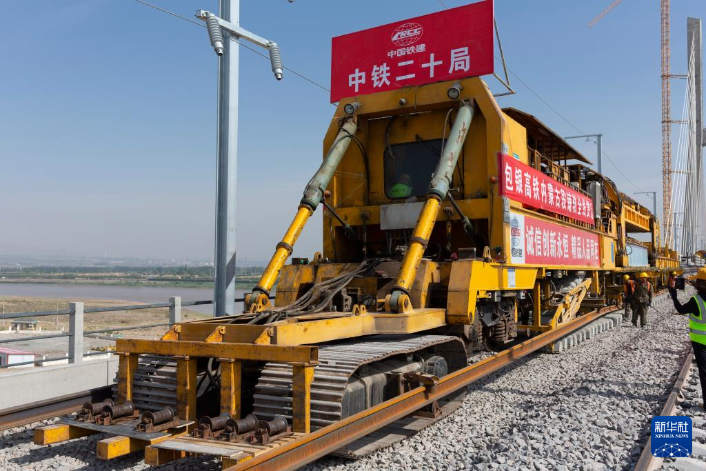 当日,在中铁二十局参建的包银高铁乌海黄河特大桥铺轨施工现场,随着最后一组500米长钢轨精准落位,包银高铁内蒙古段全线铺轨工程圆满完成。