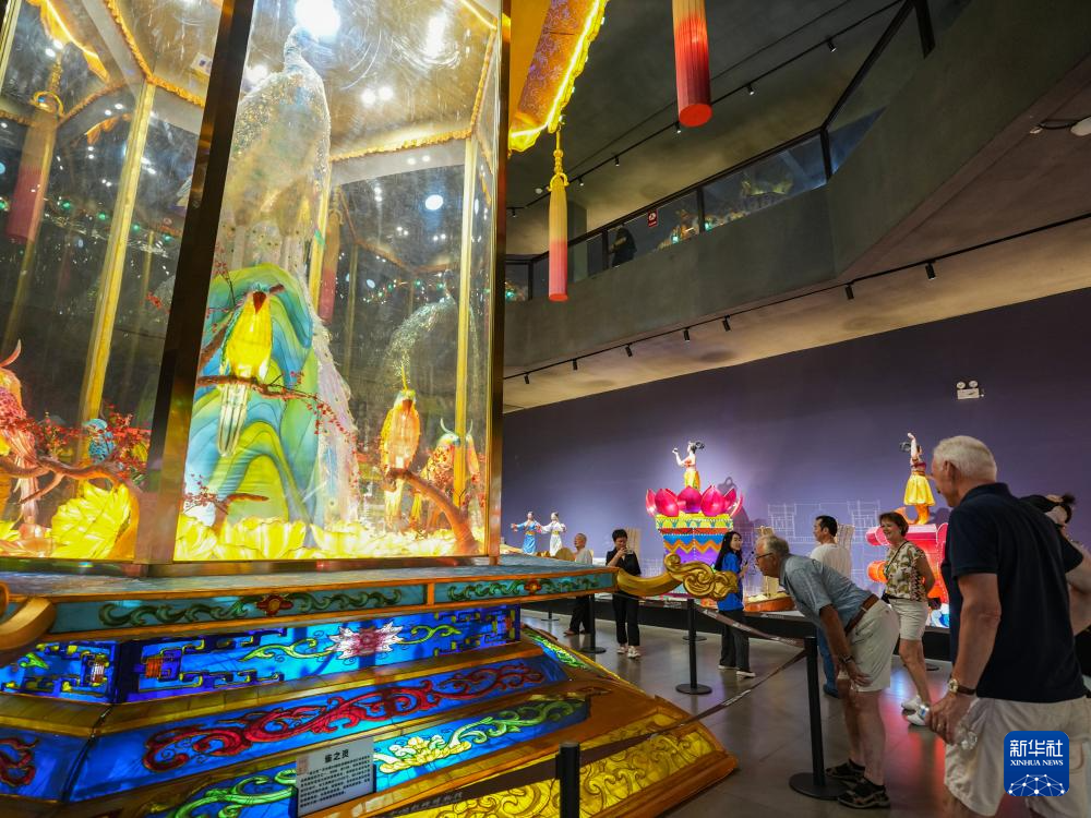 2025年6月5日,在四川省自贡市中国彩灯博物馆,来自德国的游客在参观灯组。