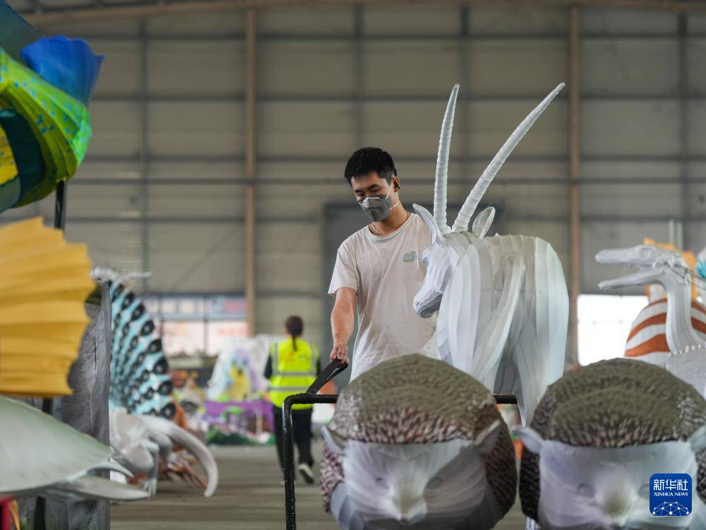 2025年6月4日,工作人员在四川省自贡市灯彩集团厂房内打包制作好的彩灯,准备发往海外。