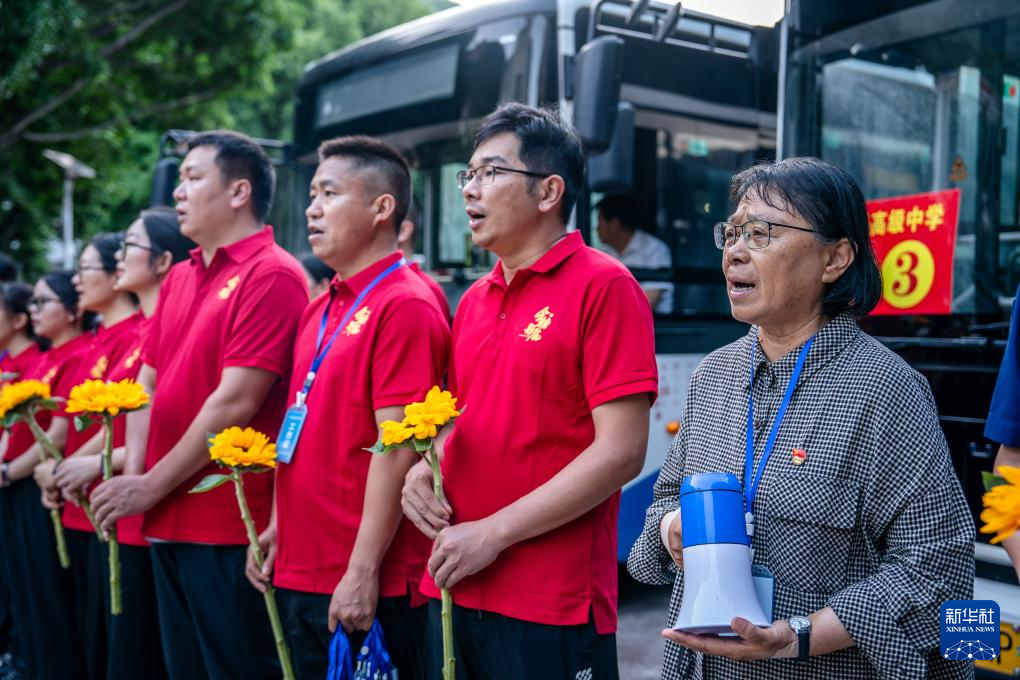 6月7日,张桂梅给准备出发参加高考的同学们加油鼓劲。