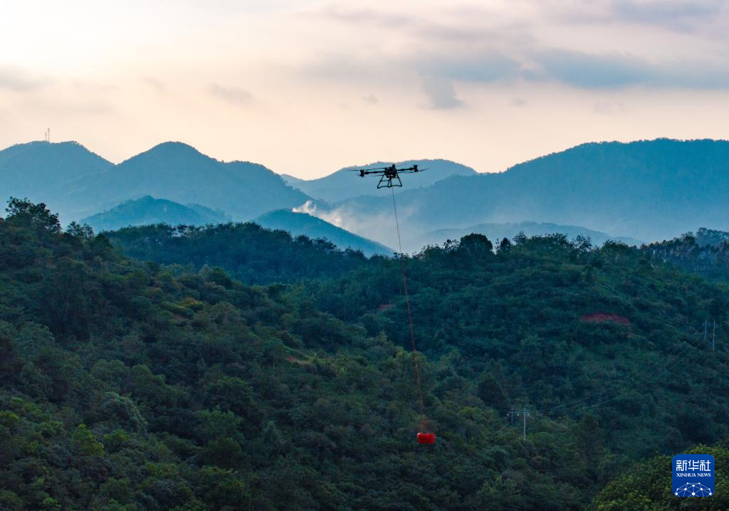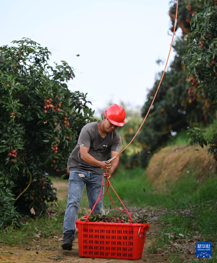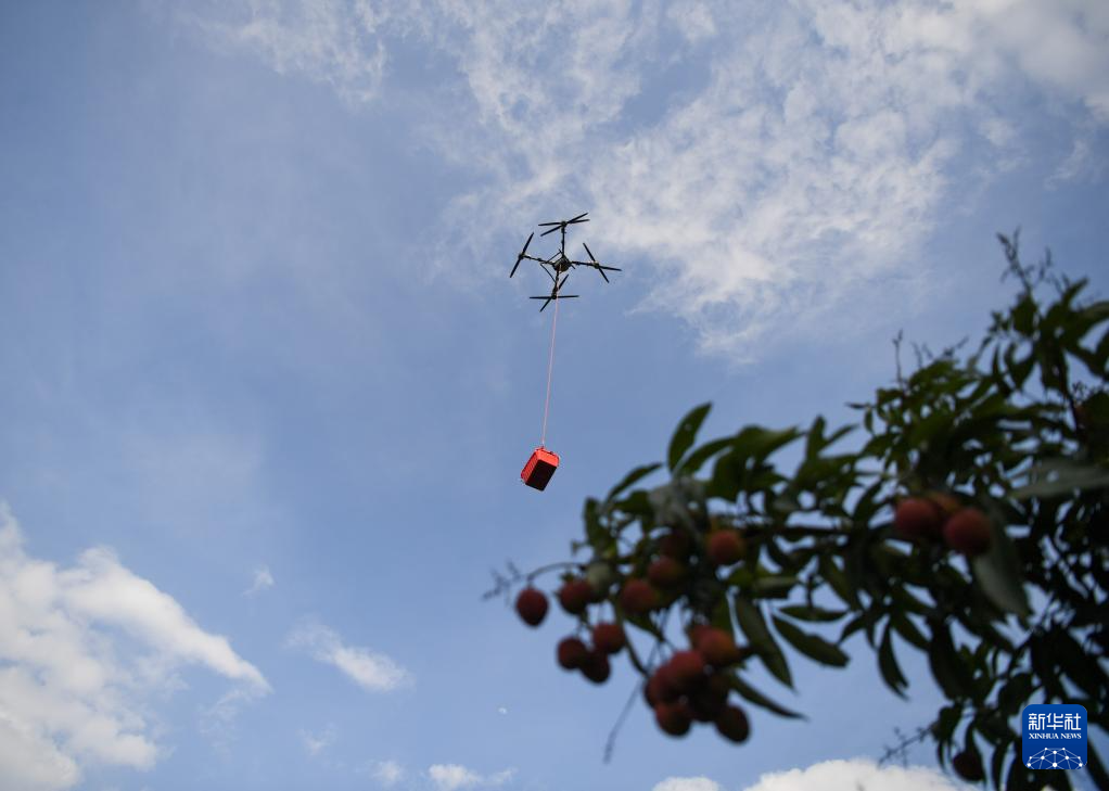 近日,全国荔枝主产区茂名迎来丰收季。面对荔枝“一日色变、三日味改”以及山地运输难的特性,当地采取无人机吊运方式运送新鲜采摘的荔枝,保障果品以更好的状态发往全国市场。