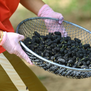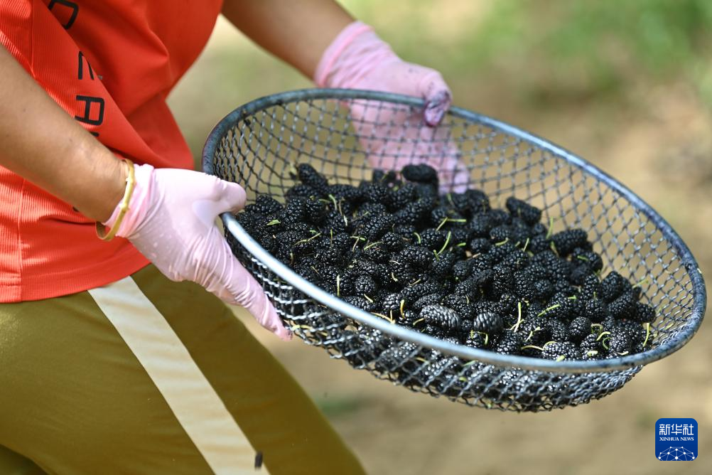 在天津市蓟州区别山镇,这是农户刚收获的桑葚(6月6日摄)。