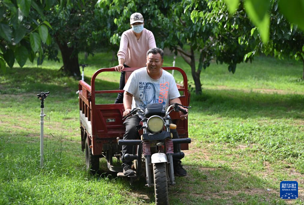 在天津市蓟州区别山镇,农户驾车去收获桑葚(6月6日摄)。