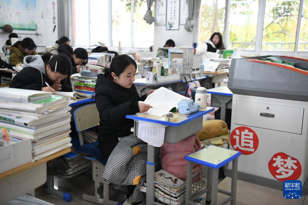 在宿城一中宿马学校,王子文在教室自习(2024年12月12日摄)。