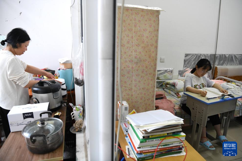 5月25日,在宿城一中宿马学校宿舍,王子文(右)在复习备考。