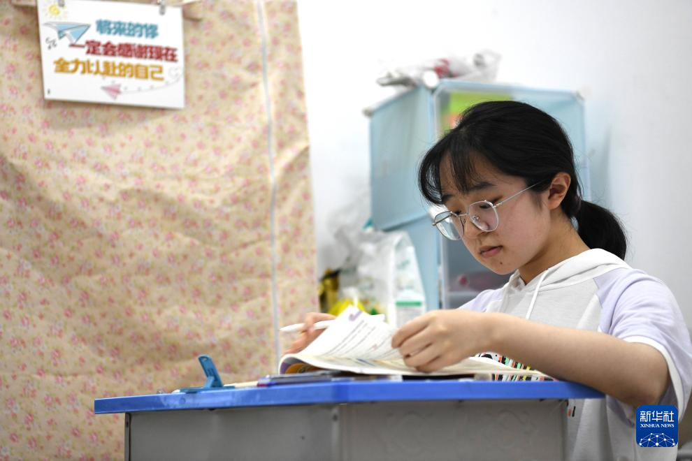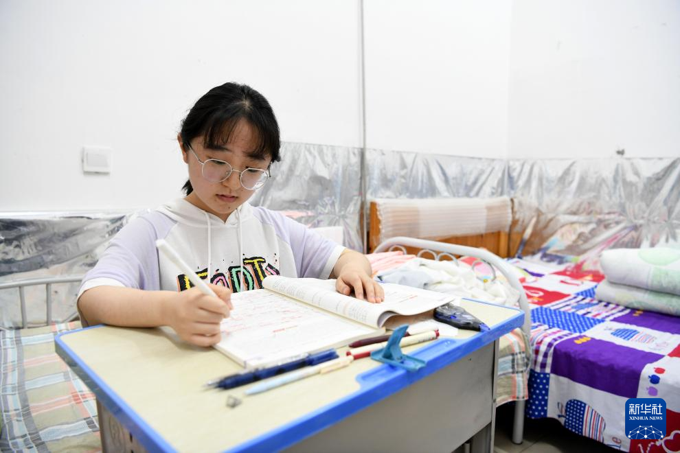 5月25日,在宿城一中宿马学校宿舍,王子文在复习备考。