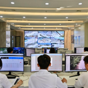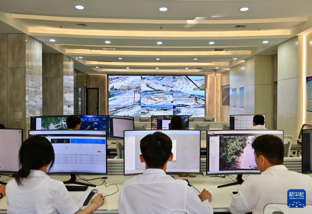 6月6日,工作人员在智慧菱镁大数据中心查看数据。