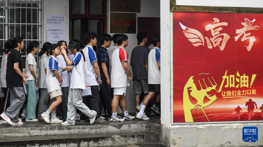 6月7日,在广西三江侗族自治县三江中学考点,考生进入考场。