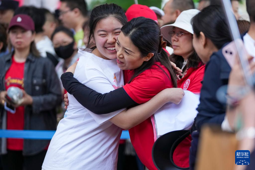 6月7日,在哈尔滨市第九中学考点,考生走入考场前与老师拥抱。