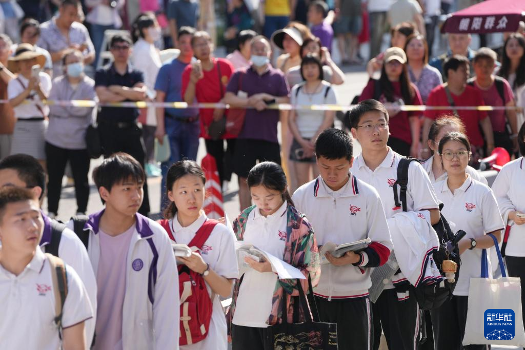 6月7日,在北京市陈经纶中学考点外,考生排队等待进入考场。