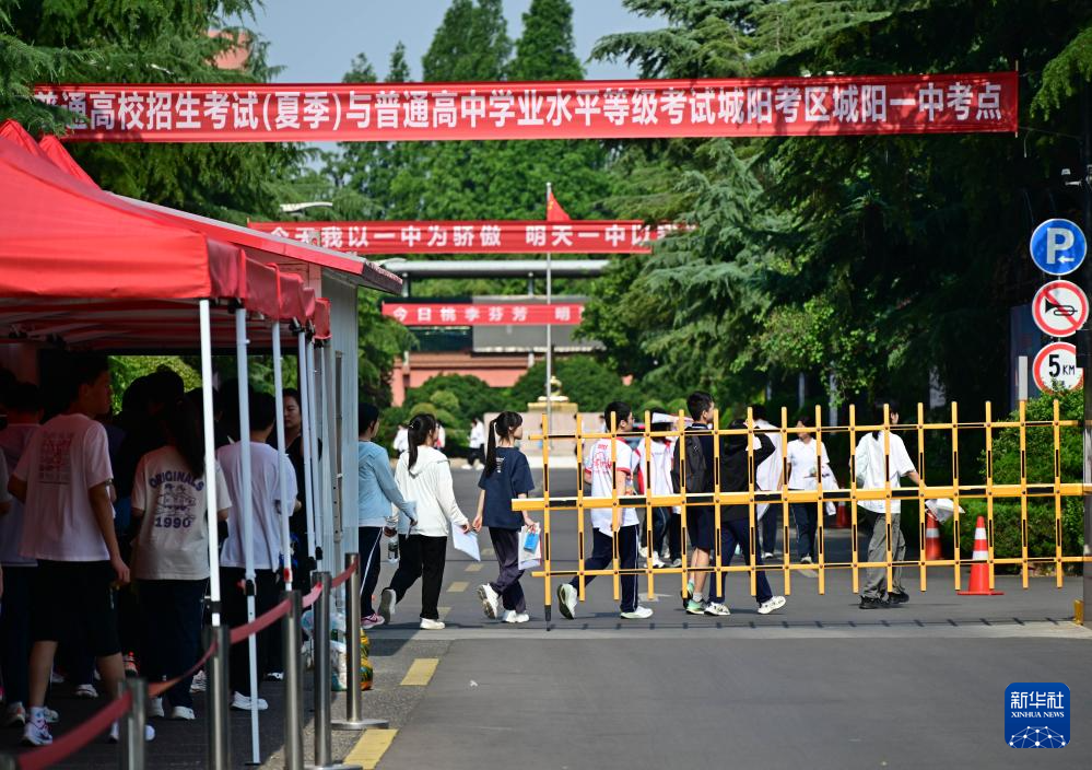 6月7日,考生有序进入山东省青岛市城阳第一高级中学考点。