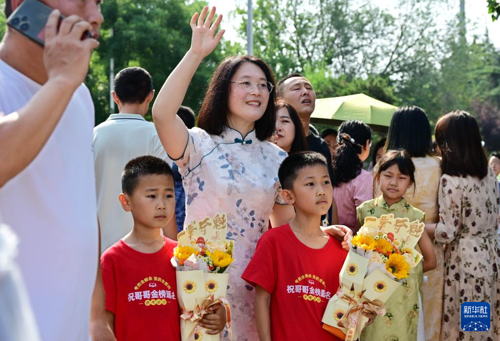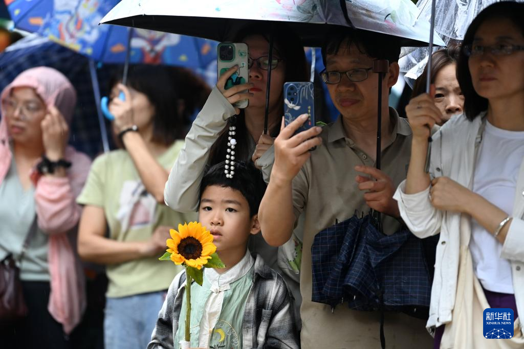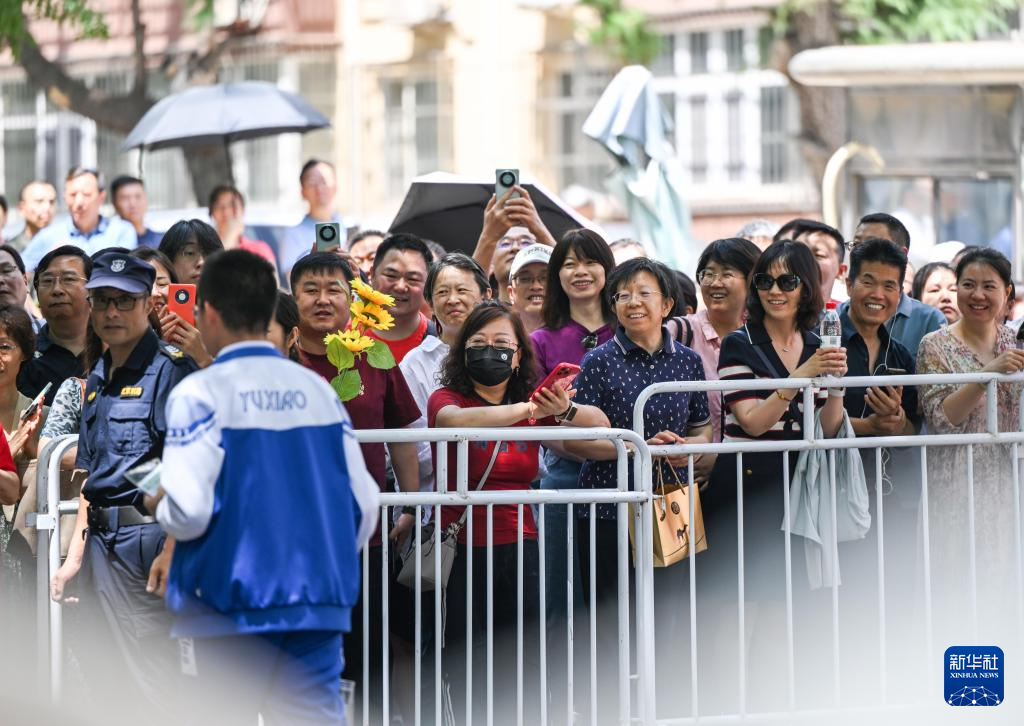 6月7日,在西安交通大学附属中学兴庆校区考点外,考生家属目送考生入场。