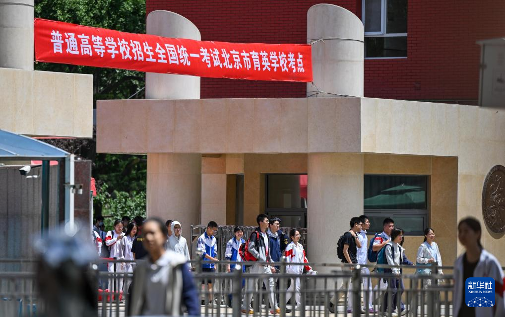 6月7日,在北京市育英学校考点,考生结束第一场考试后走出考场。