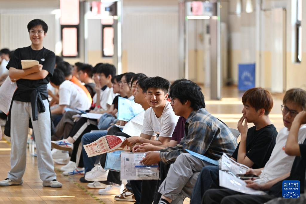 6月7日,在天津市西青区杨柳青二中,考生等待进入考场。