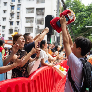 6月9日,在长沙市第一中学考点,考生在高考结束后庆祝。