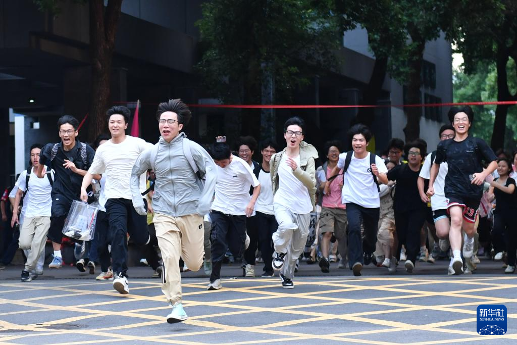 6月9日,在湖南省长沙市天心区长郡中学考点,考生考试结束后跑出考场。