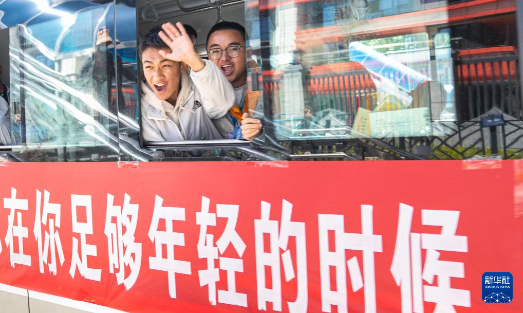 6月9日,在拉萨市拉萨中学考点,结束考试的考生乘车离开。