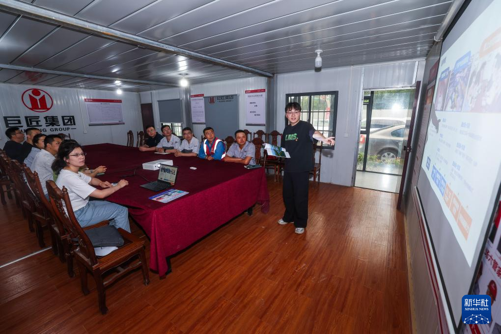 6月10日,在东方特钢镍铬新材智造施工项目部,嘉兴市南湖区新丰镇机关青年党员(右一)为企业员工讲解相关政策。