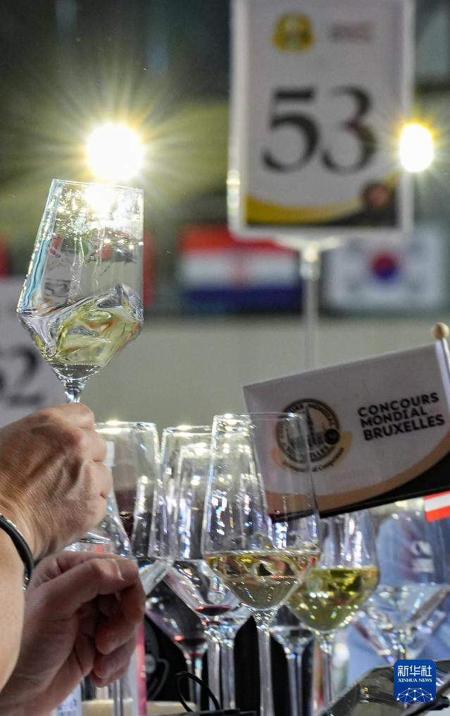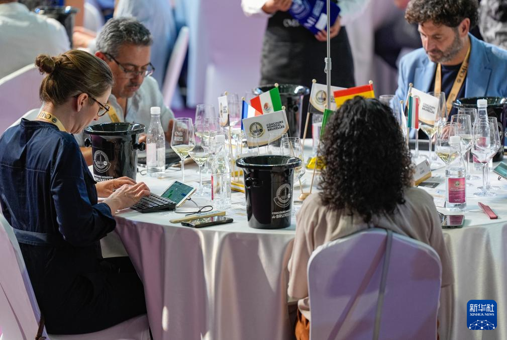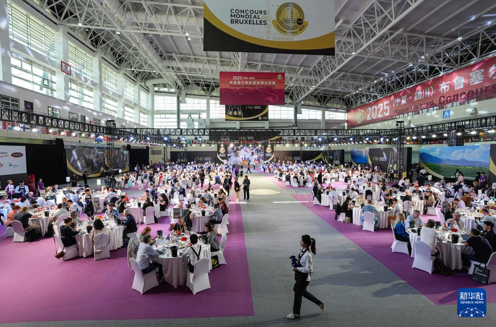 这是6月10日在宁夏银川拍摄的第32届布鲁塞尔国际葡萄酒大奖赛现场。