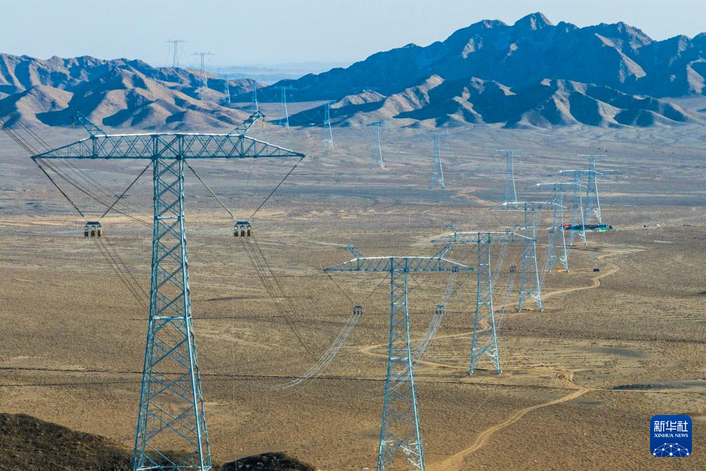 这是3月21日拍摄的哈密—重庆±800千伏特高压直流输电配套线路(无人机照片)。