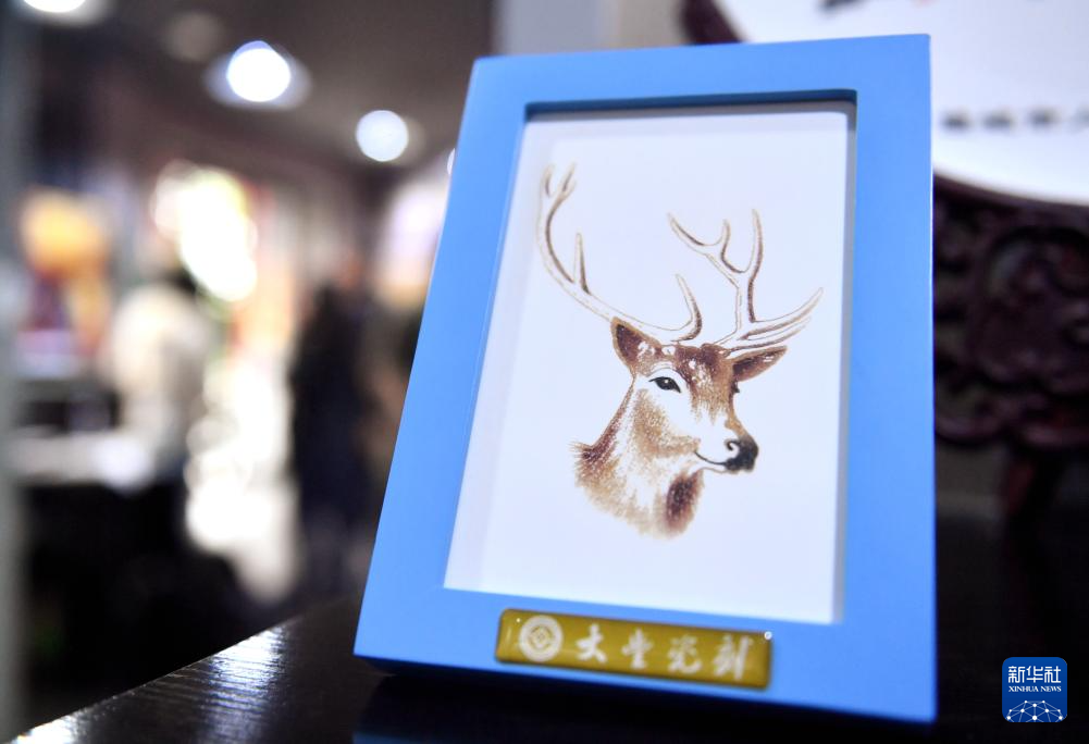 6月6日,在江苏盐城大丰瓷刻展示馆,陈银付的学生崔静蕾(右)为参观者介绍瓷刻艺术品。