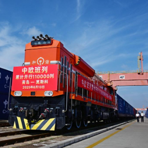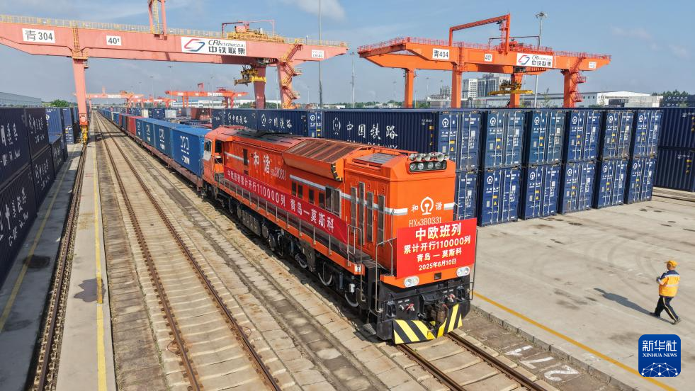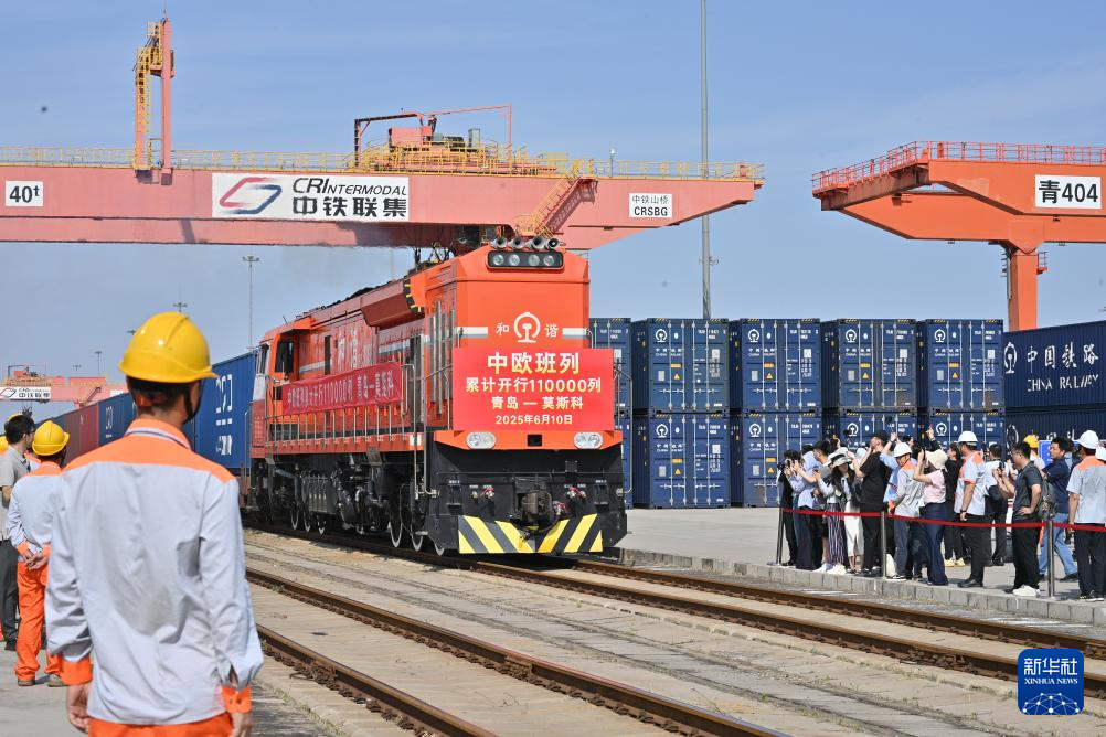 6月10日,随着由青岛开往莫斯科的75052次中欧班列从青岛胶州站开出,中欧班列累计开行突破11万列,货值超4500亿美元。