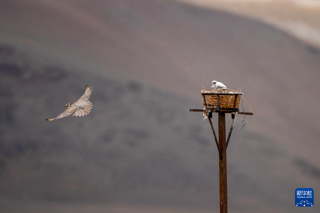 在位于西藏自治区那曲市尼玛县的羌塘国家级自然保护区核心区深处,一座座人工鹰架吸引游隼、大鵟等猛禽停栖、筑巢。