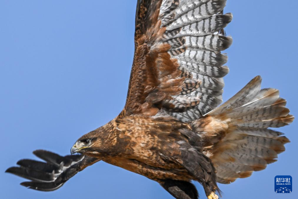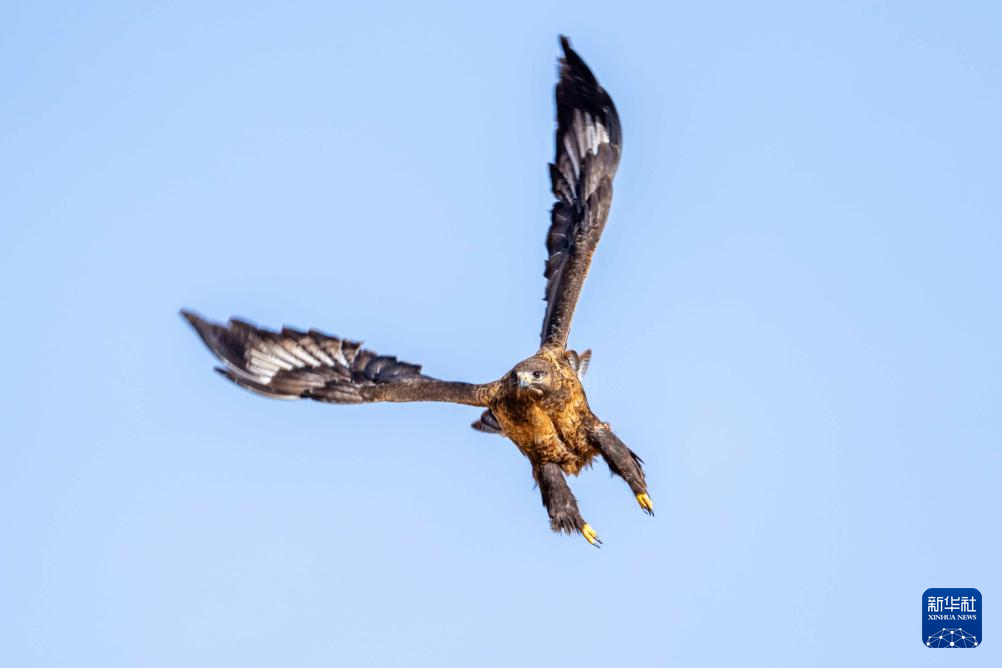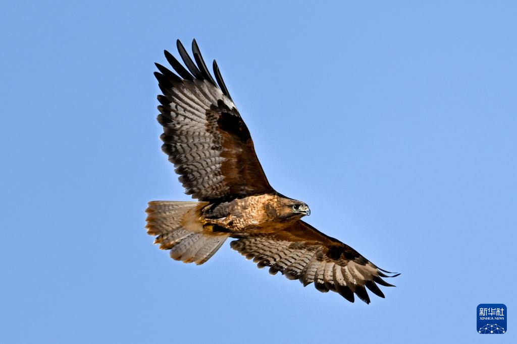 一只大鵟在羌塘草原展翅飞翔(6月8日摄)。