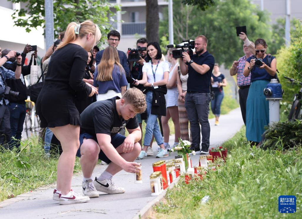 6月11日,在奥地利格拉茨,人们在发生枪击事件的学校外参加悼念活动。