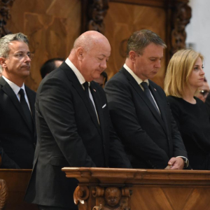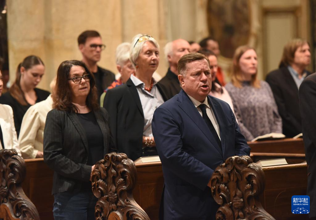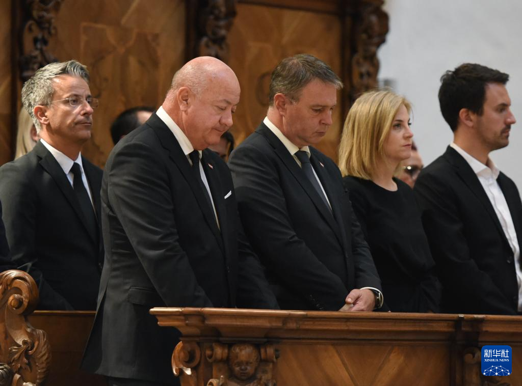 6月10日,奥地利总理施托克尔(左二)在格拉茨一所教堂参加悼念活动。
