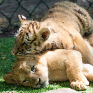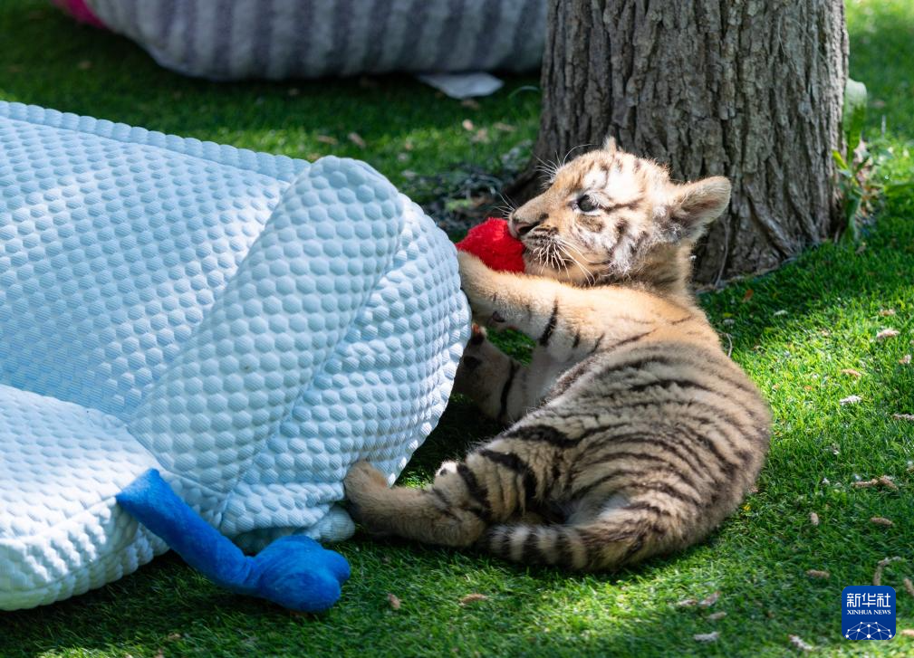 位于哈尔滨市的黑龙江东北虎林园内的东北虎、非洲狮正值繁殖高峰期。目前,已陆续有12只东北虎幼虎、8只非洲狮幼狮降生。天气晴好时,小狮虎们被放入萌虎乐园中与游客见面,憨态可掬,惹人喜爱。