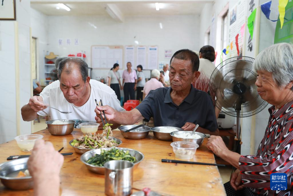 6月11日,仙溪村老人们在长者饭堂一起就餐。